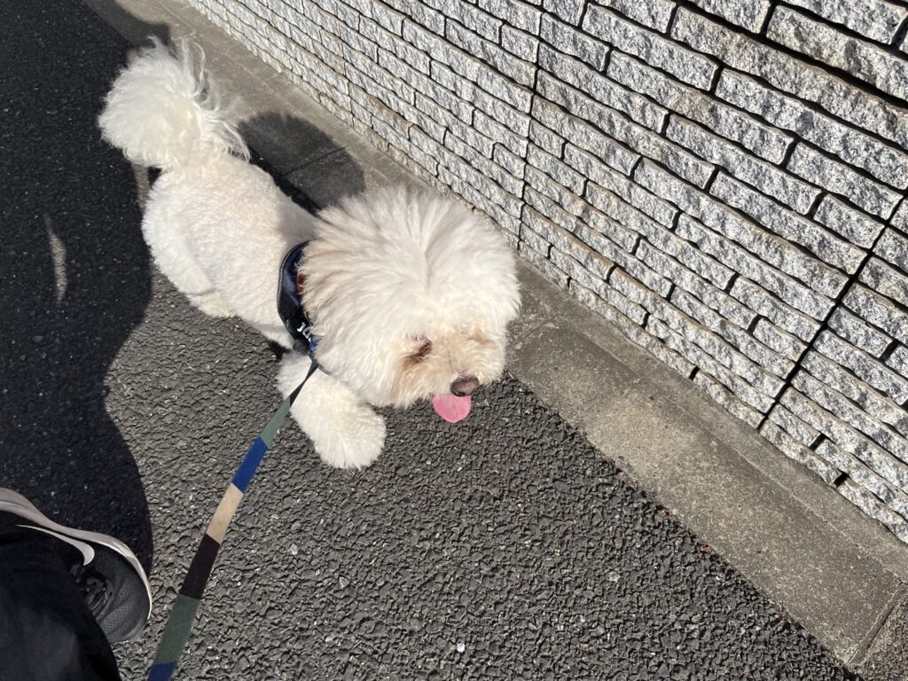 お散歩は寒いとすぐに帰りたくなるビションプーくんですが、お泊まり後半は少しあったかくなってきたのでたくさん歩いてくれました🐕